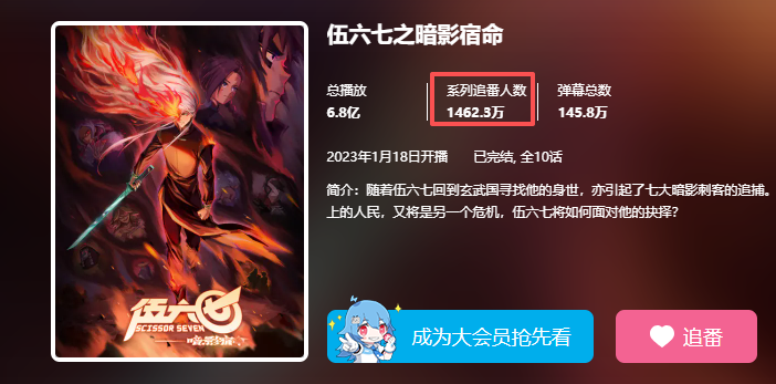 仅在B站单季就有约1500万人追番的国产动画《伍六七》,今年也有一款徽章产品销售超千万。配合明年《伍六七》游戏上线,它储备了一批精品产品,比如与泡泡玛特共鸣等品牌展开合作。