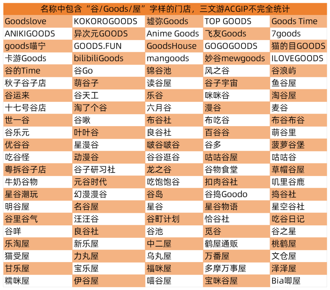 对于当时那些想要开谷子店的年轻人,取名字已经不是一件容易的事。“布谷”“布吃谷”“布谷布谷”,“谷谷逛谷”“咕咕谷屋”“咕咕谷”,“星谷”“星谷物语”“星漫谷”“星空谷社”,“乐淘屋”“新乐屋”“甘乐屋”“宝乐屋”……