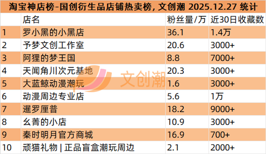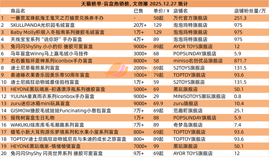 本期我们继续观察盲盒与手办的爆款产品,随后各类文创产品与店铺表现。
