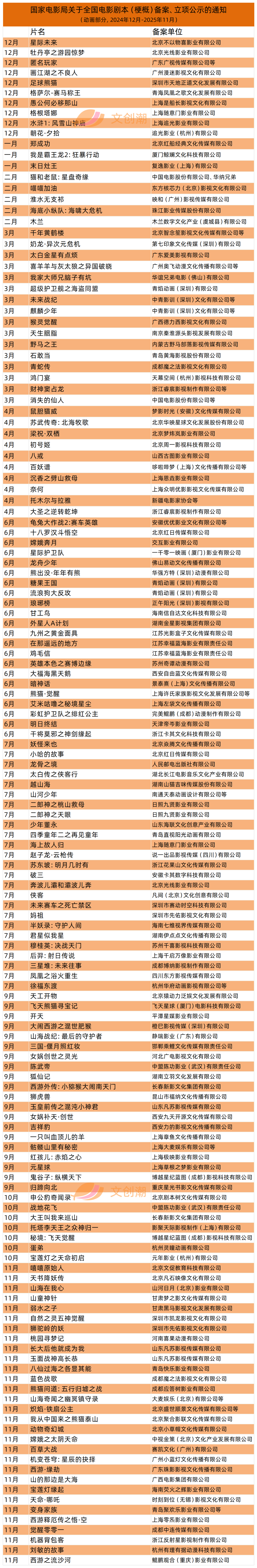 光线传媒、中国电影、奥飞娱乐、华谊兄弟、B站、百纳千成、幸福蓝海、博纳影业、大麦娱乐、复星国际…2025年都备案了动画电影