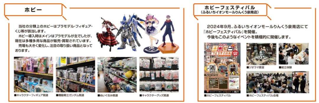 近年来它强化打造以游戏、集换式卡牌、玩具为特色的小型中古店“FURUICHI”。截至2024年11月,旗下卡牌专营店共有6家,FURUICHI有77家。