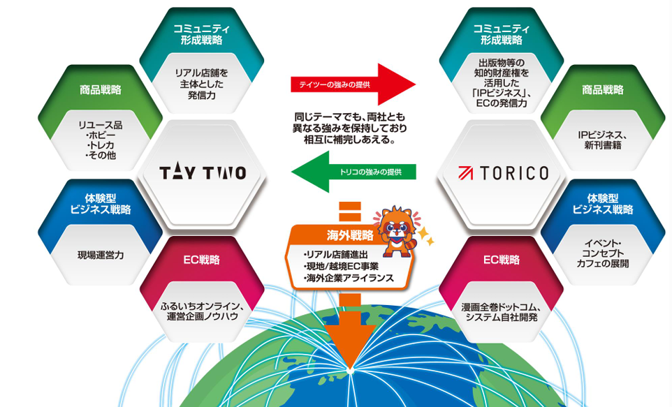 同时,TAYTWO将旗下运营的漫画相关店铺与TORICO的活动·IP联动咖啡等组织能力相结合,构筑体验型设施,计划共同开设漫画咖啡店、在FURUICHI举办各种IP企划活动等,进一步推动FURUICHI在玩具领域的品牌力。