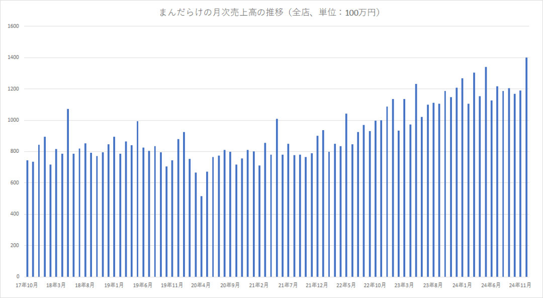 据Mandarake公布的2024年12月单月销售额,旗下所有店铺总销售额刷新单月历史记录,达14.02亿日元,同比增长16%。其中不仅有线下新、老店铺的活动助力,线上平台也为增长做出贡献。
