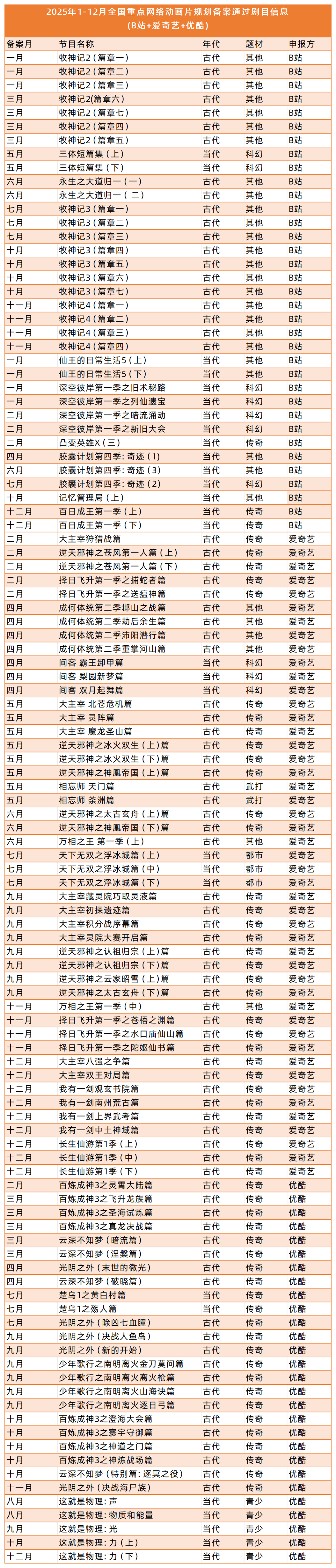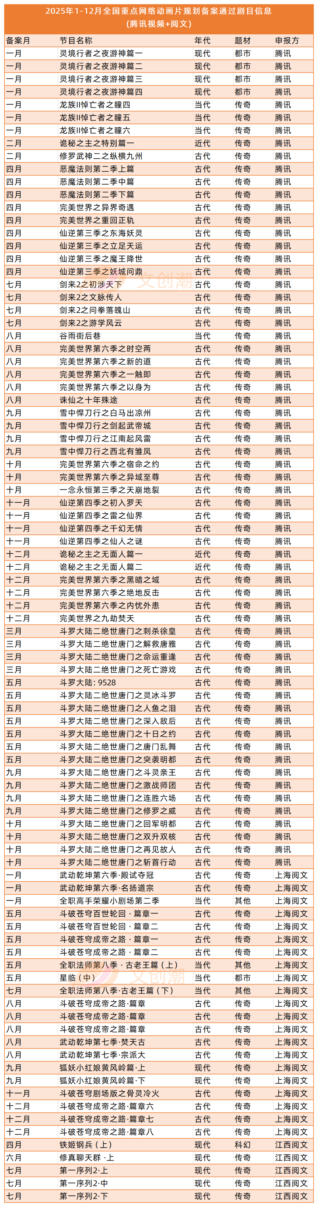 这份来自2025年的备案名录,既是当下产业权利地图,或也埋下未来变革的伏笔。中国动画的故事远未到最精彩的篇章,且行且看,文创潮期待一次充满意外的冲破藩篱。