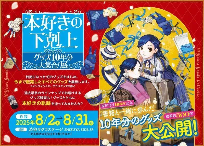 《小书痴的下克上》2024年推出了音乐剧,也是TO Books的首次尝试。2025年为纪念IP书籍化10周年,还举办了特别展会,不仅展示了约500件自16年至今的各种周边产品,还发售了众多全新周边,在合作商店举办特别收集任务活动,在日本的711、罗森便利店出售纪念明信片等等。今年为4月即将播出的新电视动画造势,在《读卖新闻》全国同日刊上刊登了广告,还将举办特别展览会。