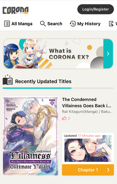2024年,TO Books开设了面向英语圈的官方漫画网站“CORONA EX for English”,提供由合作出版社或AI翻译成英文的漫画,作品基本可以免费观看,开通月度会员(4.5美元)后可无限阅读所有作品。