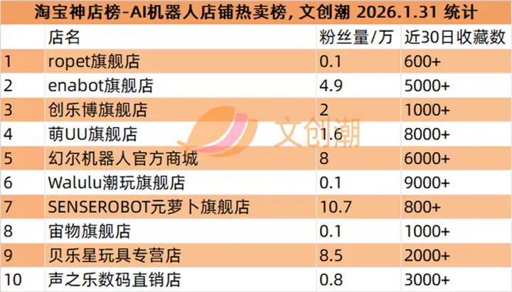 ropet旗舰店、enabot旗舰店、创乐博旗舰店、萌UU旗舰店、幻尔机器人官方商城。