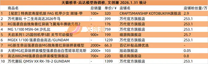 高达模型热销榜第一是CRAFTSMANSHIP KOTOBUKIYA旗舰店的寿屋机娘FAG机甲少女辉锤·甲。