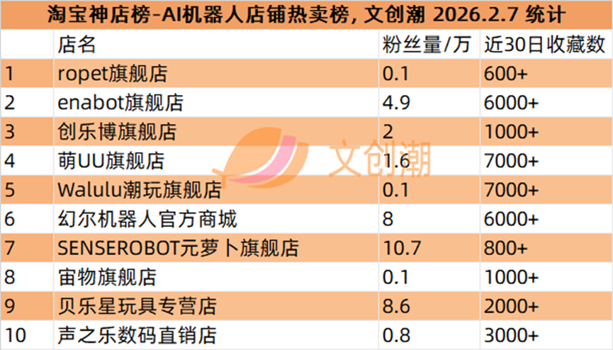 ropet旗舰店、enabot旗舰店、创乐博旗舰店、萌UU旗舰店、Walulu潮玩旗舰店。
