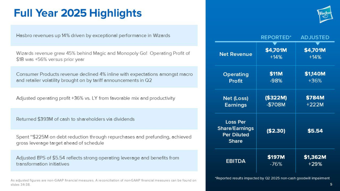 孩之宝CEO表示:“2025年我们成功执行了‘Playing to Win’战略,实现了增长并吸引了超10亿粉丝。公司正加速向数字优先的娱乐公司转型。”