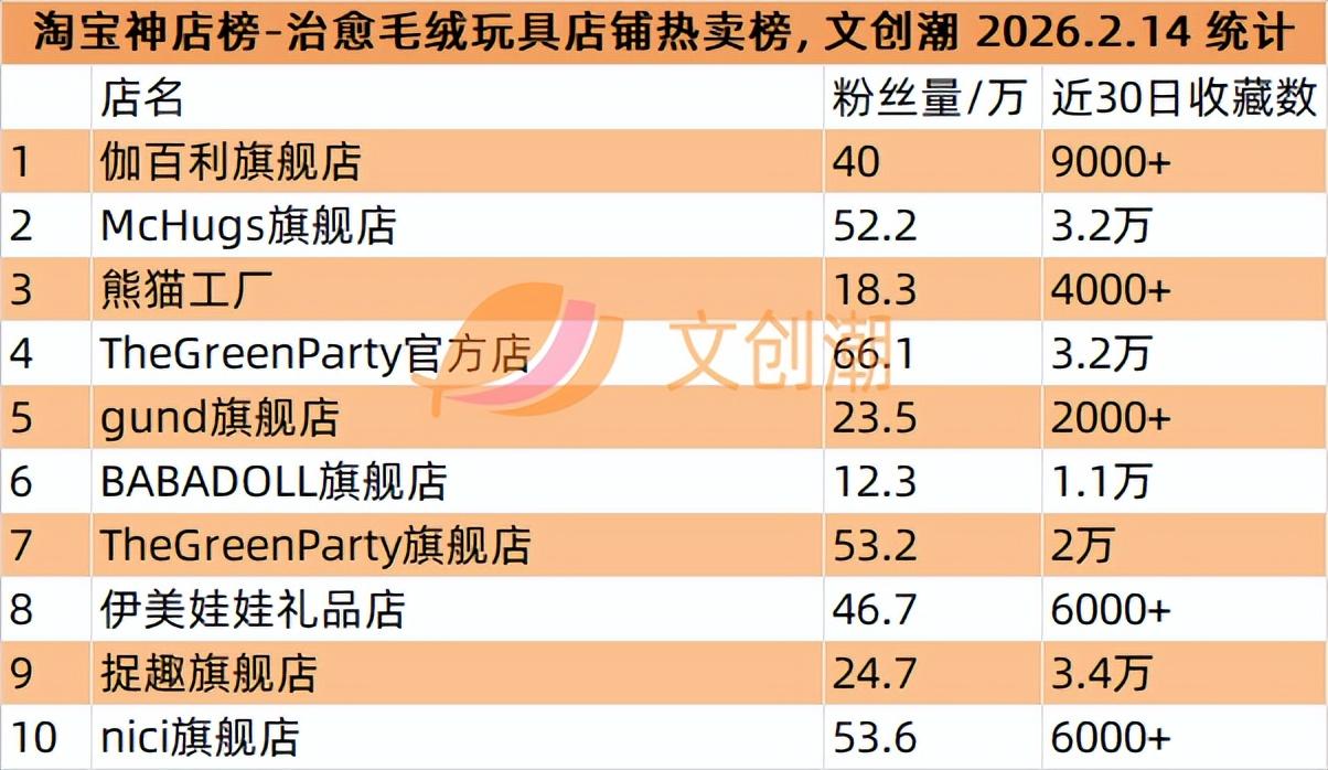 伽百利旗舰店、McHugs旗舰店、熊猫工厂、TheGreenParty官方店、gund旗舰店。