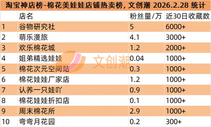 谷物研究社、萌乐漫旅、欢乐棉花城、姐弟精选娃娃、棉花次元空间站。