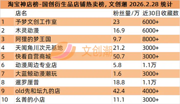 予梦文创工作室、木灵动漫、阿狸的梦王国、天闻角川次元基地、快看自营商城。