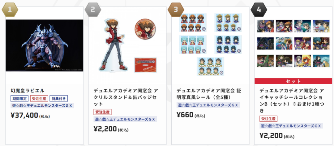 游戏王电商网站“KAIBA CORPORATION STORE”的商品畅销榜,如上图所示。
