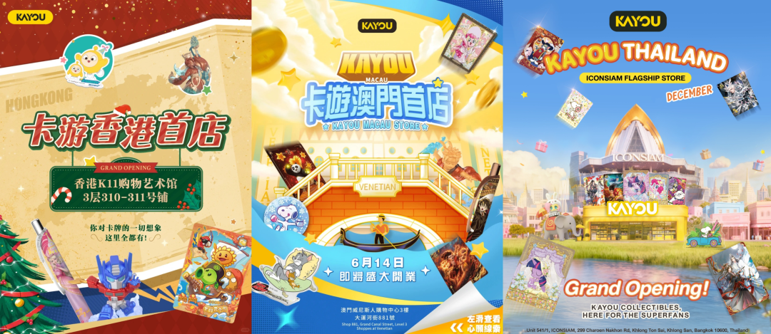卡游在亚洲的拓展同样迅速,已在中国香港和澳门开设旗舰店,作为辐射大湾区乃至国际游客的重要窗口。2025年5月,卡游在马来西亚吉隆坡举行快闪,12月在泰国曼谷开设旗舰店。