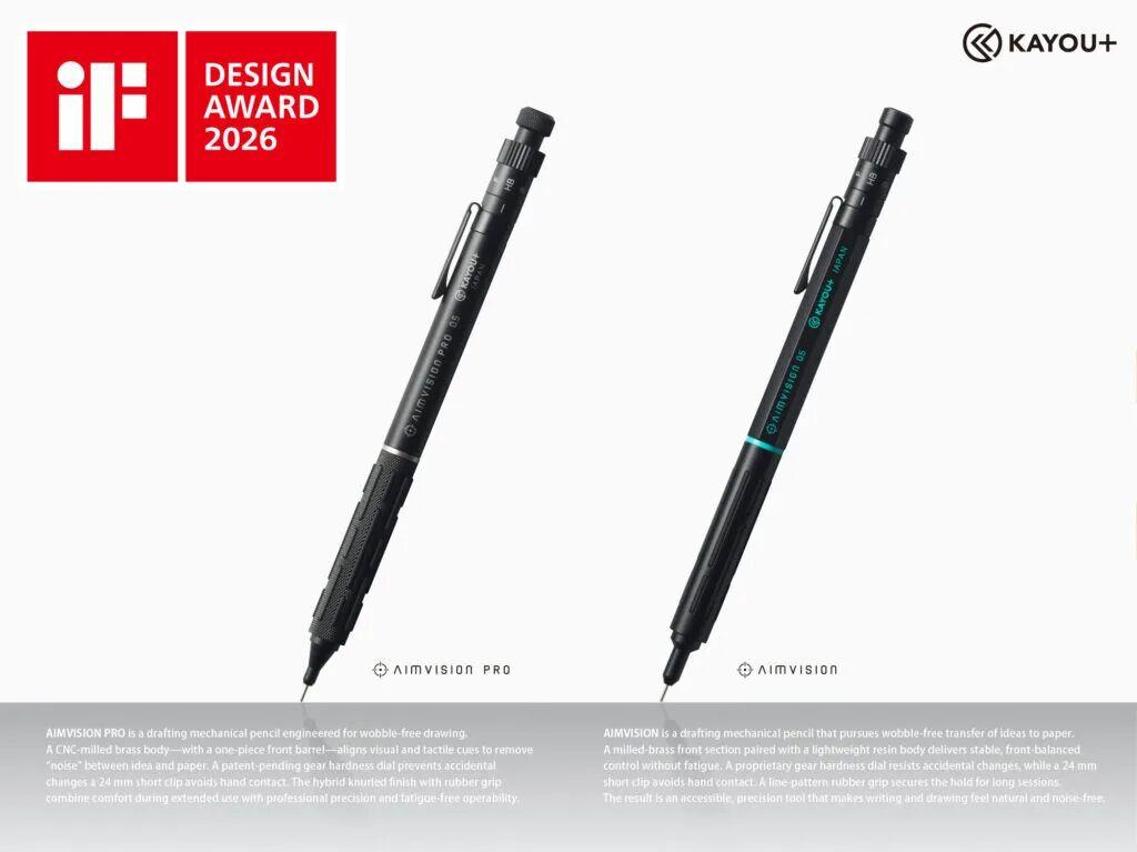 正如该产品系列名称“AIMVISION”是AIM(目标)与VISION(想象)的结合,获奖产品是一款高精度绘图机械铅笔,其设计灵感明确源自绘图工具,优先级排序为:稳定性、控制性、精确性,其质感、配色、手感等细节都备受赞誉。