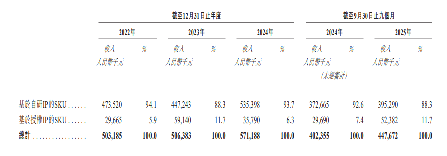 铜师傅的收入主要来自原创自研IP,2024年的占比为93.7%,2025年前三季度略有下降,占比为88.3%。