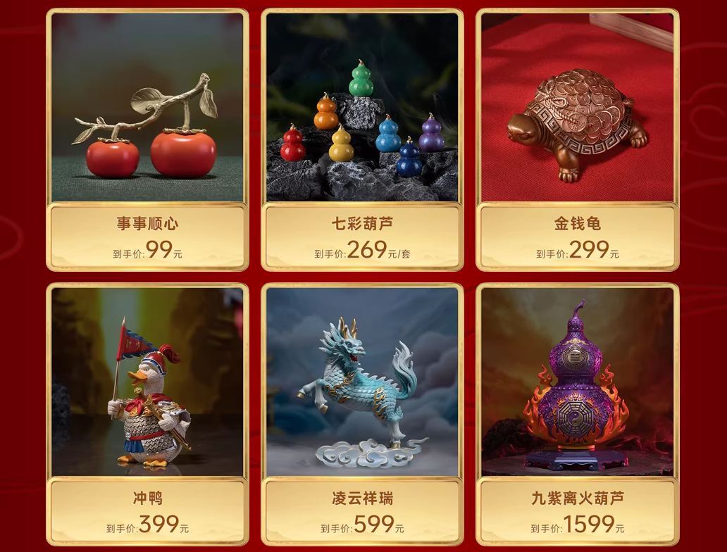 在潮玩和文创业内人士看来,铜师傅声称的“自研IP”更像是工艺品。比如其天猫旗舰店的《好运铜葫芦》产品销量50万+,就在产品页面显著标注了“工艺品”。