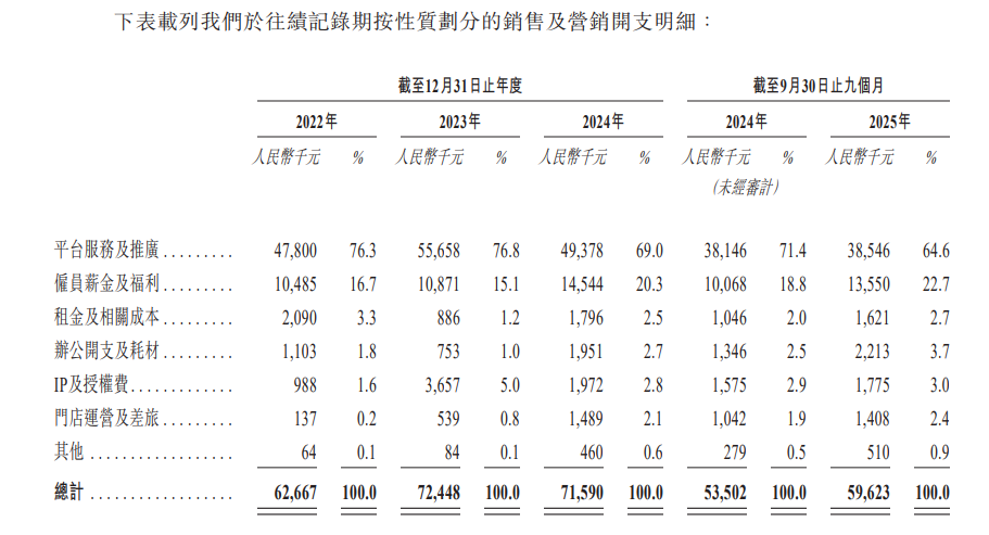 2025年前三季度,铜师傅的IP及授权费开支约177.5万元,IP研发开支约273.8万元。
