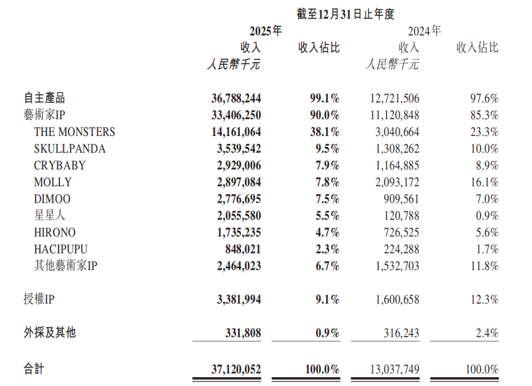 2025年度,泡泡玛特的“自主产品”收入占比已达99.1%,2024年是97.6%。