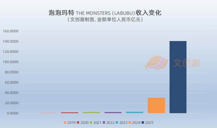 各IP中,LABUBU所在的THE MONSTERS是最大功臣,2025年收入达到141.6亿元,同比增长365.7%,跻身百亿IP行列。