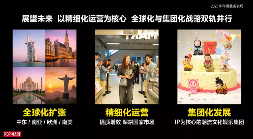 根据王宁、司德、文德一、褚音(中国业务总裁)、杨镜冰(首席财务官)的表述,2026将是泡泡玛特以优化为主的一年,“线下扩张与提质并重,夯实品牌向上根基”,“线上升级与赋能并举,优化本地消费体验”,以精细化运营为核心,稳步推进全球化和集团化。